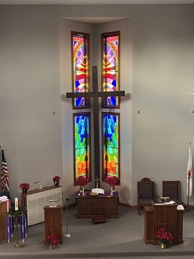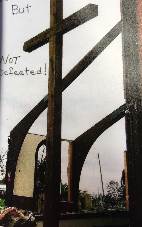 Once again, in June 2008 the town of Chapman and the CUMC was devastated by a tornado that destroyed the parsonage and a major portion of the church building. When the winds settled and so much of the town was unrecognizable, the sanctuary cross was still standing. Church members carefully hauled any materials and furnishings that could be saved to farms around the town. The new design features the cross highlighted by beautiful stained-glass windows and stones gathered from the ruins. The cross stands and the ministry continues today.